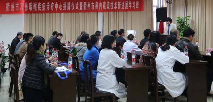 ??? 11月30日,衢州市耳鼻咽喉疾病診療中心揭牌儀式暨鼻內(nèi)窺鏡技術(shù)新進(jìn)展學(xué)習(xí)班在我院十二樓會(huì)議室舉行。市衛(wèi)生局陳根成局長、周衛(wèi)華副局長、我院陳震宏院長出席并致辭,來自衢州地區(qū)各級(jí)醫(yī)院耳鼻咽喉科50余名醫(yī)務(wù)人員參加了會(huì)議。會(huì)議由黨委副書記周見主持。