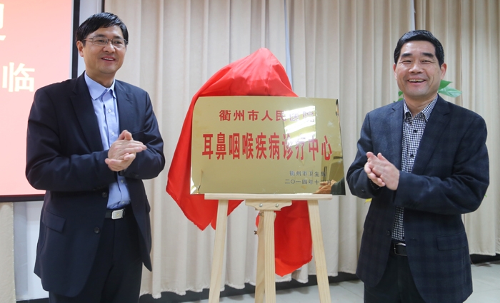 陳根成局長及鄭宏良教授為“衢州市耳鼻咽喉疾病診療中心”揭牌