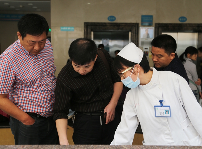 ??? 10月14日上午,省衛(wèi)生計(jì)生委和公安廳聯(lián)合組織的打擊涉醫(yī)違法犯罪專項(xiàng)行動(dòng)督查組一行來(lái)到我院督查涉醫(yī)違法犯罪專項(xiàng)行動(dòng)工作進(jìn)展情況。市衛(wèi)生局副局長(zhǎng)周衛(wèi)華、醫(yī)政處處長(zhǎng)劉文勇、市公安局、市直各家醫(yī)院的分管院長(zhǎng)及相關(guān)科室負(fù)責(zé)人陪同檢查。