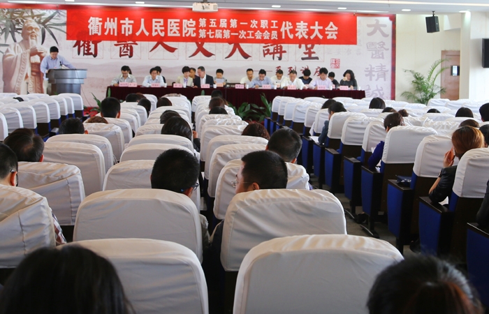 ??? 會議在雄壯的國歌聲中拉開了帷幕。工會主席蔣一鳴致開幕詞,代表大會主席團對出席此次“兩會”的代表表示熱烈的歡迎。院長陳震宏作《醫(yī)院工作報告》,黨委書記徐天才作《衢州市人民醫(yī)院職工獎懲辦法》(第四次修訂)和《醫(yī)院績效工資實施方案(修訂稿)的報告,醫(yī)院工會副主席柳錫松作《醫(yī)院工會工作報告》,副院長王巨宏作《醫(yī)院財務(wù)工作報告》,經(jīng)審委主任沈紅作《醫(yī)院工會經(jīng)費審查工作報告》,工會委員胡澤富作《提案工作報告》。