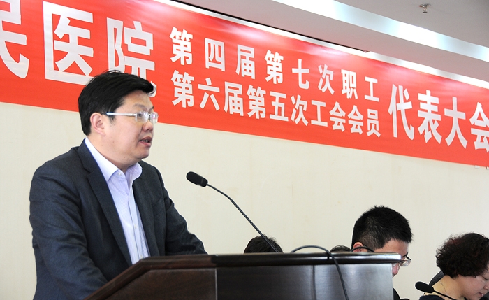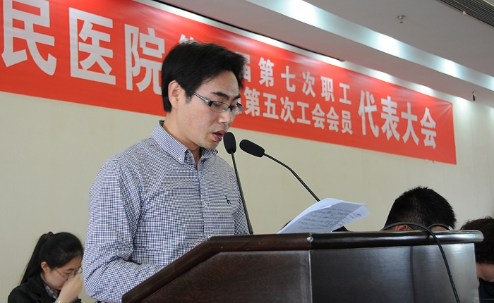 ????4月13日,我院第四屆第七次職工代表大會暨第六屆第五次工會會員代表大會在學(xué)術(shù)報告廳隆重舉行。陳震宏院長作了《醫(yī)院工作報告》,徐天才書記作了《衢州市人民醫(yī)院職工獎懲辦法》(第三次修訂)的報告,醫(yī)院工會副主席柳錫松作了《醫(yī)院工會工作報告》,王巨宏副院長作了《醫(yī)院財務(wù)工作報告》,經(jīng)審委主任沈紅作了《醫(yī)院工會經(jīng)費(fèi)審查工作報告》,工會委員胡澤富作了《提案工作報告》。
