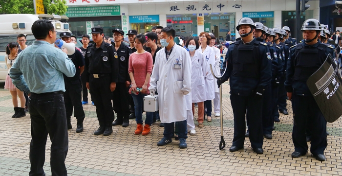 ??? 我院一直非常重視就醫(yī)安全,每年舉行2次反恐演練。