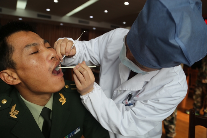 ??? 專家們?yōu)橄拦俦隽朔N植牙知識講座,耐心講解,貼心交流,細致入微地為他們進行了口腔健康檢查與指導?!跋缿?zhàn)士冒著生命危險保衛(wèi)我們的生命與財產(chǎn)安全,我們用先進的醫(yī)療技術來回報他們的無私奉獻,軍愛民,民擁軍,能為他們服務我們感到很開心?!贬t(yī)院副院長、口腔科主任醫(yī)師周見說。