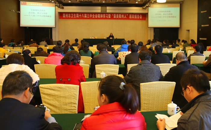 ??? 11月29日下午,市衛(wèi)生局十八屆三中全會(huì)精神學(xué)習(xí)暨“最美衢州人”巡回報(bào)告會(huì)在東方大酒店召開(kāi)。我院中層以上干部參加了本次活動(dòng)。