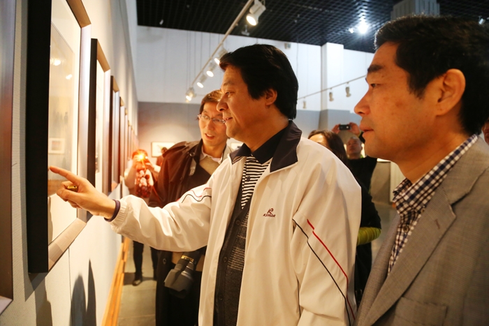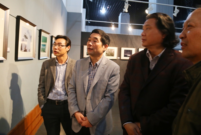 副市長(zhǎng)朱建華(圖中)參觀書(shū)法、攝影展