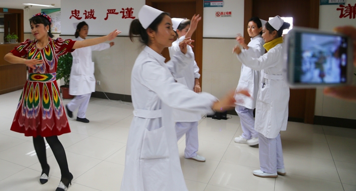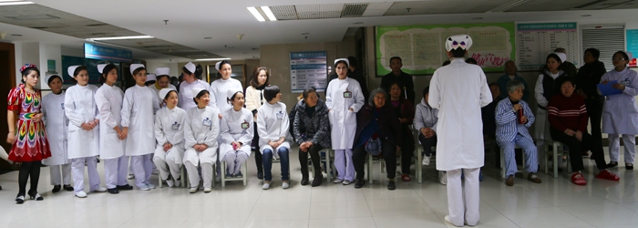 ??? 新疆烏什縣衛(wèi)生學(xué)員—熱依拉首先帶來了一段民族舞蹈表演,精彩的表演一下子就拉近了醫(yī)護(hù)人員與病人之間的距離。座談會上,護(hù)士們給患者普及了有關(guān)眼科、耳鼻咽喉科、高血壓、糖尿病等方面的科普小知識。與會患者及家屬也暢所欲言,提出了中肯的意見和建議。
