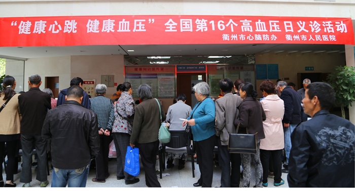 ???? 10月30日上午,衢州市心腦防辦和我院在門診大廳聯(lián)合開展全國高血壓日義診活動。