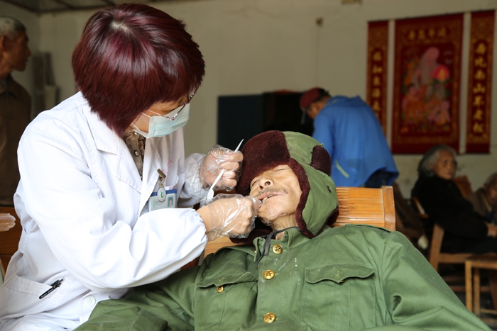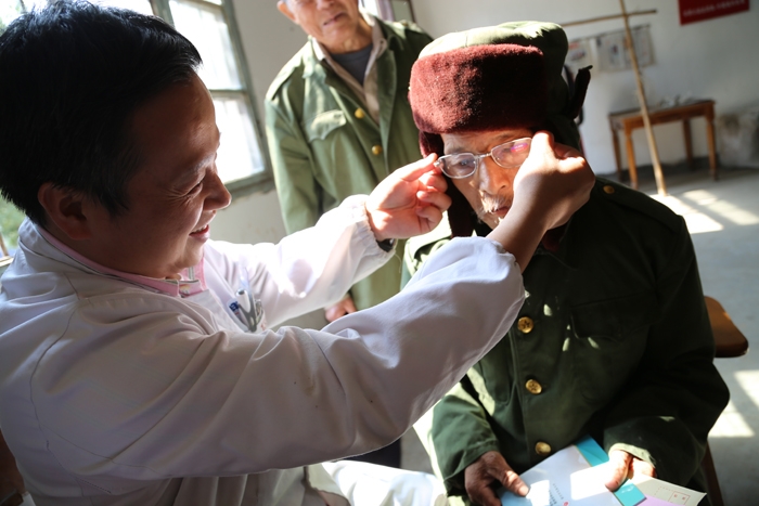 ??? 志愿者們一到敬老院,便忙活起來。醫(yī)療志愿者們考慮到敬老院里的老人大多數(shù)患有不同程度的高血壓、糖尿病等慢性病,以及老人們行動(dòng)不變,聽力下降,視力障礙等困難,根據(jù)自己的專業(yè)特長(zhǎng),一對(duì)一進(jìn)行量血壓、測(cè)視力、口腔與白內(nèi)障等眼科相關(guān)疾病的檢查,提供用藥、飲食、活動(dòng)等方面的指導(dǎo)。自行車俱樂部的志愿者們忙著為老人打掃衛(wèi)生、剪指甲、嘮家常,在地方不大的廚房?jī)?nèi)擠滿了“摩拳擦掌”忙得不亦樂乎的志愿者們,他們體驗(yàn)著大家一起包餃子的樂趣。 “小小”志愿者親自為老人送上集體購(gòu)買的老花鏡、棉襪與長(zhǎng)壽糕。