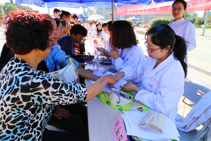 ??? 我院積極響應(yīng)號召,抽調(diào)普外科毛興龍主任、內(nèi)分泌科胡朝暉主任、心血管內(nèi)科金奇志主任、腫瘤內(nèi)科鄒燕醫(yī)師參加了義診活動,頂著烈日,熱情接待前來咨詢的每一位群眾,耐心細致地為其講解病情、提出治療建議?,F(xiàn)場服務(wù)群眾200余人次,發(fā)放健康宣教材料500余份,深受廣大市民的歡迎和好評。