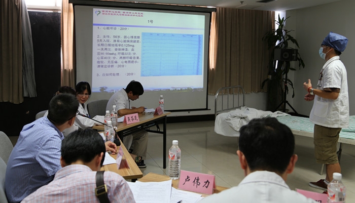 ??? 8月8日下午,在門診五樓示教室進(jìn)行決賽。邀請(qǐng)到的評(píng)委分別為醫(yī)院科教處處長(zhǎng)程科云、心內(nèi)科專家暨本次活動(dòng)的主考官俎德玲、內(nèi)科片主任/內(nèi)科教研室主任田明慶、全科醫(yī)學(xué)科主任戴凌云、血液內(nèi)科副主任吳芬芝及感染科副主任盧偉力。決賽中每位參賽學(xué)生根據(jù)初賽時(shí)書寫的病歷,逐一進(jìn)行體格檢查、病例診斷分析或相關(guān)檢查結(jié)果分析及疾病治療處理3個(gè)項(xiàng)目的考核。經(jīng)過兩個(gè)半小時(shí)的激烈角逐,最終評(píng)選出一等獎(jiǎng)1項(xiàng)、二等獎(jiǎng)2項(xiàng)、三等獎(jiǎng)3項(xiàng),優(yōu)勝獎(jiǎng)2項(xiàng)。