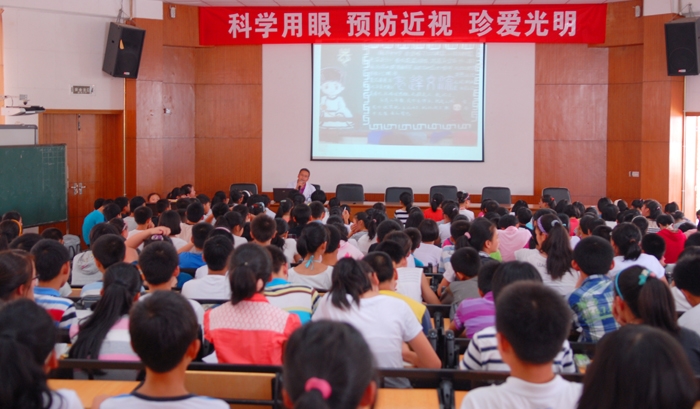 ??? 我院青少年近視防治中心鄭志剛副主任醫(yī)師給白云學(xué)校初一年級的450名學(xué)生帶來了一堂生動的“科學(xué)用眼 預(yù)防近視 珍愛光明”的專題講座。鄭醫(yī)師圖文并茂地講解了近視的成因及其預(yù)防保健方法,引導(dǎo)學(xué)生們合理用眼,關(guān)注用眼衛(wèi)生,樹立起預(yù)防近視從一點(diǎn)一滴做起的觀念,并現(xiàn)場傳授了眼保健操――晶體操,解答了學(xué)生提出的各種問題。講課現(xiàn)場氣氛活潑,受到了學(xué)校師生的熱烈歡迎和好評。