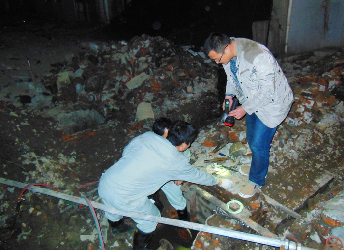 ??? 維修中心早早準備好夜間需要更換的管道、閥門,萬事俱備,只等待著下班后開始檢修的命令。晚間供應室工作人員一下班,維修中心立即投入戰(zhàn)斗,大家卯足干勁,不畏艱難,相互配合,各項工作有條不紊地進行。天已黑,維修人員穿著滿是泥濘的衣服正熱火朝天地奮戰(zhàn)。為全力保障我院的正常供水,他們瞌睡了就用冷水洗把臉,汗水濕透了衣服也全然不顧。當凌晨3點鐘聲敲響的時候,奮戰(zhàn)到半夜的維修中心工作人員,才拖著疲憊的身體回家。