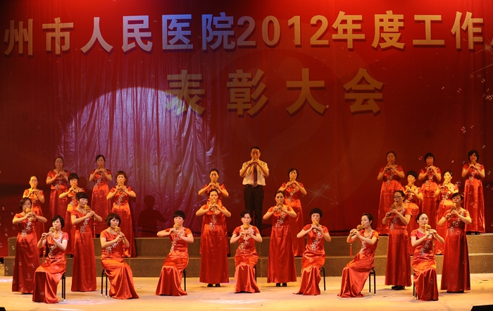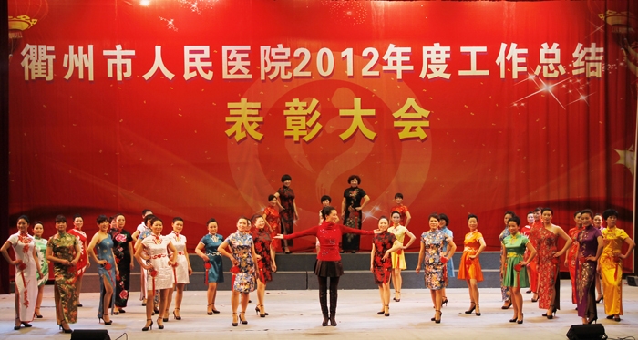 ??? 接下來,后勤片的合唱《回娘家》帶大家重溫經(jīng)典老歌,外科片幽默風(fēng)趣的小品《衢醫(yī)好聲音》,護(hù)士長們古典優(yōu)雅的《旗袍秀》,更是把晚會(huì)推向了高潮。離退休員工的《菊花臺(tái)》、新員工的《斗牛舞》和衢醫(yī)班的《拉丁健美操》共同演義我們醫(yī)院的昨天、今天和明天。院葫蘆絲俱樂部獻(xiàn)上的葫蘆絲合奏《映山紅》,是新穎而又獨(dú)特的節(jié)目。