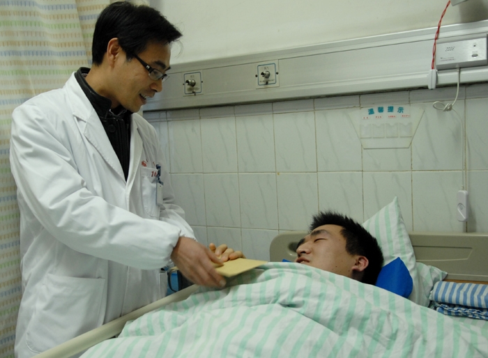 ??? 衢州市人民醫(yī)院得知了汪南南的感人事跡后,院黨政聯(lián)席會(huì)議決定,“暫不考慮費(fèi)用問(wèn)題,盡全力搶救汪南南的生命”。院長(zhǎng)助理王李華立即組織了相關(guān)科室專家為汪南南進(jìn)行了會(huì)診,制訂了周全的手術(shù)方案。術(shù)后,院黨委書(shū)記徐天才來(lái)到了汪南南床前,送上了醫(yī)院黨員醫(yī)療救助基金2000元,鼓勵(lì)他樹(shù)立信心戰(zhàn)勝病魔。汪南南所在的血管外科除了給予他精心的醫(yī)護(hù)外,還為其進(jìn)行了捐款2000元。
