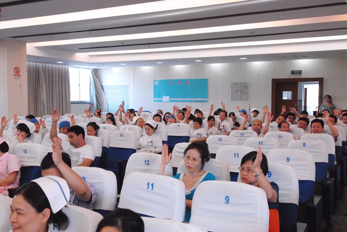 ??? 7月31日下午,我院第四屆第五次職代會(huì)在學(xué)術(shù)報(bào)告廳舉行。大會(huì)應(yīng)到代表130人,實(shí)到103人。會(huì)上,陳震宏院長作了《衢州市人民醫(yī)院崗位設(shè)置實(shí)施方案》的報(bào)告,蔣一鳴副書記作了《衢州市人民醫(yī)院績效工資實(shí)施方案》的報(bào)告。經(jīng)各代表團(tuán)分組討論和審議,代表們舉手表決,大會(huì)通過了《衢州市人民醫(yī)院崗位設(shè)置實(shí)施方案》和《衢州市人民醫(yī)院績效工資實(shí)施方案》,圓滿閉幕。
