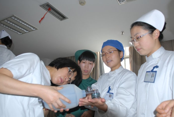 “勤練兵,保安全” 文章來源:宣聯(lián)處 作者:徐哲鋒 點擊數(shù):4351 更新時間:2012-08-25 ??? 我院護理部每季度都會組織護士進行崗位練兵,以提高護士在急救過程中“來之能戰(zhàn)、戰(zhàn)之能勝”,確保醫(yī)療安全。圖為25日下午門診護理骨干在學習呼吸皮囊的正確操作。 上一篇: 醫(yī)院舉辦2008年度中層干部培訓班 下一篇: 杭州市衛(wèi)生計生委來我院調研“杭衢山海協(xié)作”工作
