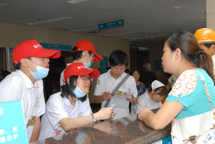 ??? 7月25日開始,走進(jìn)我院門診大廳的患者都會(huì)發(fā)現(xiàn)每個(gè)樓層多了一些頭戴小紅帽,身穿白色T恤衫的志愿者。他們給前來醫(yī)院的就診者導(dǎo)診、護(hù)送做檢查、勸阻吸煙,只要患者需要幫忙,他們就上前伸出援手。