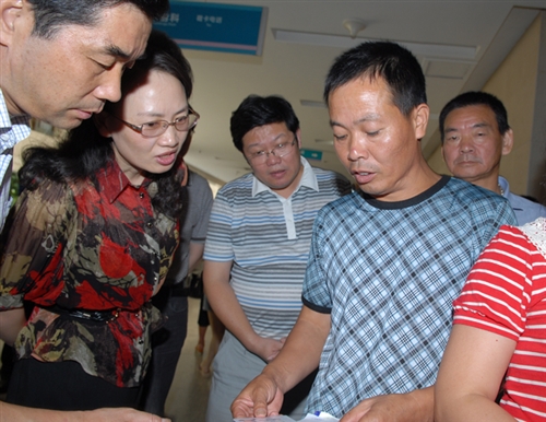 ??? 羅衛(wèi)紅一行首先來到掛號(hào)室與現(xiàn)場(chǎng)的市民進(jìn)行親切的交談,又查看了輸液室的現(xiàn)場(chǎng)工作狀況,征詢患者及醫(yī)護(hù)人員對(duì)就醫(yī)流程合理性的意見和建議。在隨后召開的座談會(huì)上,陳震宏院長(zhǎng)匯報(bào)了醫(yī)院近期的工作情況,并就下一步的醫(yī)院總體規(guī)劃及醫(yī)院發(fā)展進(jìn)程中遇到的基礎(chǔ)建設(shè)、人才培養(yǎng)、學(xué)科建設(shè)中存在的問題向羅副市長(zhǎng)和陳局長(zhǎng)進(jìn)行了詳細(xì)的匯報(bào)。