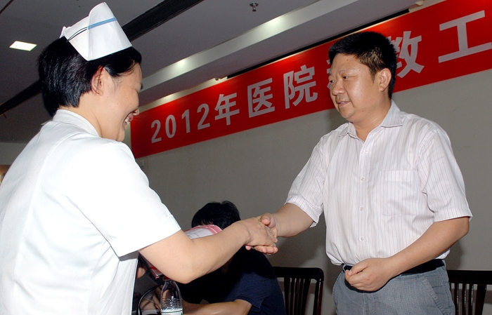 ??? 會上,吳善水宣讀了2011年度醫(yī)院科技獎表彰文件、2011年度醫(yī)院科研論文獎表彰文件、2012年醫(yī)院醫(yī)療新技術(shù)獎表彰文件,毛力非、吳善水、周見、王巨宏、徐周佳現(xiàn)場為獲獎?wù)哳C獎。