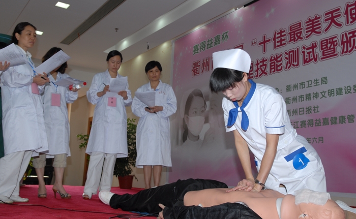 ??? 6月15日下午,由衢州市衛(wèi)生局、衢州市文明辦與衢州日?qǐng)?bào)社聯(lián)合舉辦的衢州市首屆“十佳最美天使”評(píng)選活動(dòng)護(hù)理技能大賽在我院五樓學(xué)術(shù)報(bào)告廳舉行。
