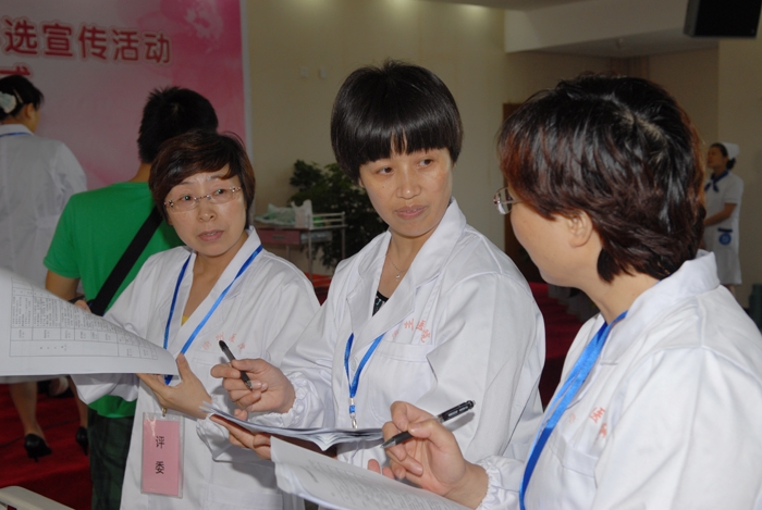 ??? 評(píng)委團(tuán)由來自各家醫(yī)院的11位資深護(hù)士組成,她們根據(jù)參賽護(hù)士的術(shù)前準(zhǔn)備、操作要點(diǎn)、患者評(píng)估等方面進(jìn)行打分。經(jīng)過近5個(gè)小時(shí)的角逐,根據(jù)比賽分?jǐn)?shù)高低,評(píng)選出了10位“十佳最美天使”。