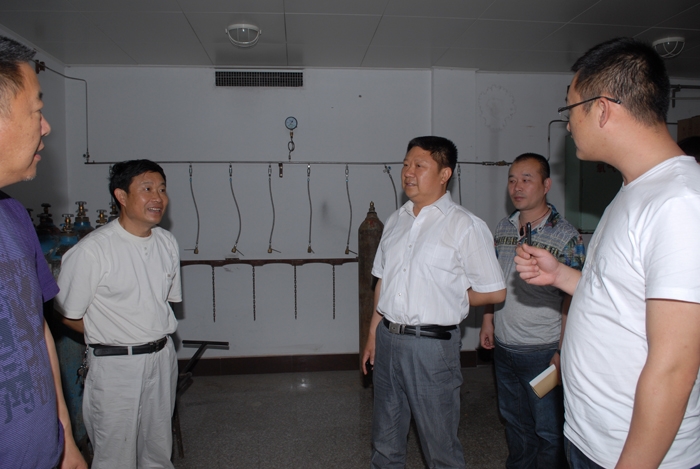 ??? 王助理一行先后巡查了配電制冷間、高壓氧艙、自備發(fā)電機房、供氧中心、鍋爐房、電梯機房。通過現(xiàn)場查看、翻閱臺賬記錄、詢問相關人員安全知識等,王助理對整體檢查結果表示滿意,對檢查中存在的不足也提出了切實有效的整改措施,限時整改到位。