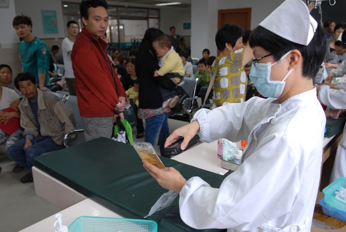 ??? 近日走進(jìn)我院輸液室的人都會(huì)發(fā)現(xiàn),原來排成長(zhǎng)隊(duì)的現(xiàn)象沒有了,整個(gè)輸液大廳井然有序。只見注射臺(tái)的護(hù)士轉(zhuǎn)身從輸送帶上取下配置好的液體,用掃描儀對(duì)準(zhǔn)液體上的條形碼,大廳里就響起了“請(qǐng)**號(hào)**(姓名)到**注射臺(tái)注射”,此時(shí)輪到的患者起身前往相應(yīng)注射臺(tái)接受注射。