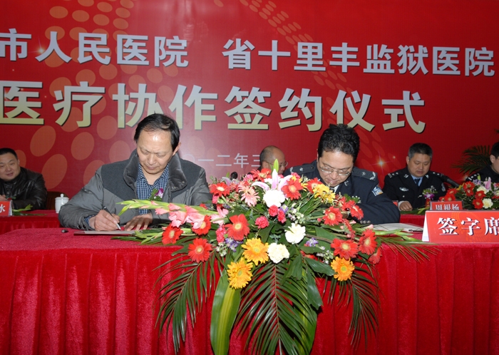 ?????我院與省十里豐監(jiān)獄醫(yī)院一直保持著協(xié)作關(guān)系,締結(jié)協(xié)作醫(yī)院是雙方合作向深度邁進(jìn)的重要一步。兩院締結(jié)技術(shù)協(xié)作醫(yī)院關(guān)系后,雙方將在醫(yī)院管理、醫(yī)療技術(shù)、學(xué)科建設(shè)、人才培養(yǎng)、科研攻關(guān)、公共衛(wèi)生等方面,開展多層次、多方位、多形式的合作和交流,我院肩負(fù)幫助十里豐監(jiān)獄醫(yī)院提高醫(yī)療技術(shù)及管理水平的任務(wù)。雙方將為提升監(jiān)獄民警職工的醫(yī)療保障層次,維護(hù)監(jiān)獄和諧穩(wěn)定作出新的貢獻(xiàn)。