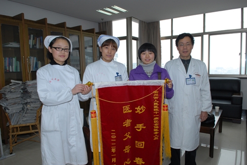 汪女士說(shuō),她父親因慢性腫塊型胰腺炎于2011年11月12日住進(jìn)我院十一病區(qū)。入院時(shí)的身體狀況極為不好,并且脾氣暴躁,時(shí)常言語(yǔ)攻擊醫(yī)護(hù)人員,不配合治療,但是主管醫(yī)生周一農(nóng)及其他醫(yī)護(hù)人員非常耐心,給予她父親親人般的照顧。她父親本身患有多種疾病,手術(shù)風(fēng)險(xiǎn)很大,可是此次不動(dòng)手術(shù),他父親只有面臨死亡。經(jīng)入院一個(gè)多月的調(diào)理,周醫(yī)生頂著巨大的壓力為她父親實(shí)施部分胃切除,胰十二指腸切除和膽管吻合術(shù)。手術(shù)后,周醫(yī)生考慮到她父親生性固執(zhí),如果在手術(shù)室蘇醒后見(jiàn)不到親人,很有可能會(huì)拔掉身上插的維系生命的管子,周醫(yī)生就一直陪著她父親直到出手術(shù)室。手術(shù)后周醫(yī)生對(duì)我父親加倍關(guān)心,休息時(shí)也會(huì)來(lái)病房了解我父親的病情,逗她父親開(kāi)心,為他加油打氣。
