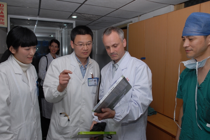 GUDJON KARLSSON 博士是心內(nèi)科專家,此次專程來我院訪問。GUDJON KARLSSON 博士在周見副院長的陪同下參觀了我院。在介入導(dǎo)管室,GUDJON KARLSSON 博士觀摩了我院心內(nèi)科醫(yī)生的介入手術(shù)操作后,與心內(nèi)科醫(yī)生作了交流,他對我院心內(nèi)科開展的介入手術(shù)項目、例數(shù)、醫(yī)生嫻熟的操作技術(shù)豎起了大拇指。心內(nèi)科病房護(hù)士整潔的著裝、和患者融洽的關(guān)系給GUDJON KARLSSON 博士留下了深刻的印象,主動要求和醫(yī)護(hù)人員合影。GUDJON KARLSSON 博士還作了一場精彩的學(xué)術(shù)報告,介紹了世界心臟介入手術(shù)的新技術(shù)新進(jìn)展。我院醫(yī)生在聽了講座后與GUDJON KARLSSON 博士進(jìn)行了探討。