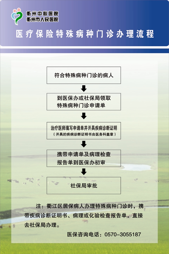 醫(yī)療保險特殊病種門診辦理流程 文章來源:醫(yī)保辦 作者:醫(yī)保辦 點擊數(shù):19188 更新時間:2012-09-11 上一篇: 醫(yī)療保險轉(zhuǎn)診治療辦理流程 下一篇: 最多跑一次”又升級!28種大病保險特殊用藥,在衢州這些藥店可刷卡結(jié)算
