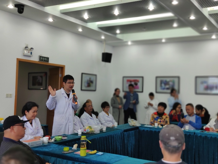 11月10日下午,衢州市人民醫(yī)院聯(lián)合市疾控中心、市中醫(yī)醫(yī)院共同舉辦了“家庭與糖尿病”為主題的糖尿病日活動(dòng)。40余位糖友參加了此次活動(dòng),糖友們從飲食、運(yùn)動(dòng)、生活方式、心理調(diào)適等方面分享了自己的抗糖經(jīng)驗(yàn)。市糖尿病防治中心主任、我院內(nèi)分泌科主任胡朝暉,副主任劉加和對(duì)患者的日常處理方法進(jìn)行了點(diǎn)評(píng),他們強(qiáng)調(diào)糖尿病的防治,家庭很關(guān)鍵。只有得到了家庭的關(guān)注和支持,抗糖才會(huì)事半功倍。內(nèi)分泌科護(hù)士長(zhǎng)陳育群用食物模型為大家講解科學(xué)健康的飲食管理。
