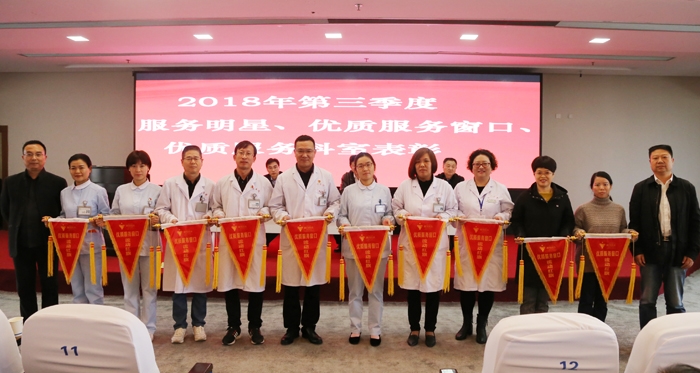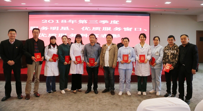黨委副書記、紀(jì)委書記吳善水宣讀了表彰文件:在2018年第三季度“服務(wù)明星”、“優(yōu)質(zhì)服務(wù)窗口”、“優(yōu)質(zhì)服務(wù)科室”評選活動中,經(jīng)過科室推薦、支部審核、醫(yī)院考評等綜合評定,評選出服務(wù)明星10名。