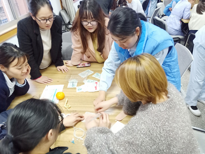 會議現(xiàn)場還舉辦了導(dǎo)管工作坊,護(hù)士們分組練習(xí)各種類型敷貼在導(dǎo)管固定中的使用方法,使我院靜脈治療護(hù)理更加規(guī)范化、精細(xì)化、準(zhǔn)確化。