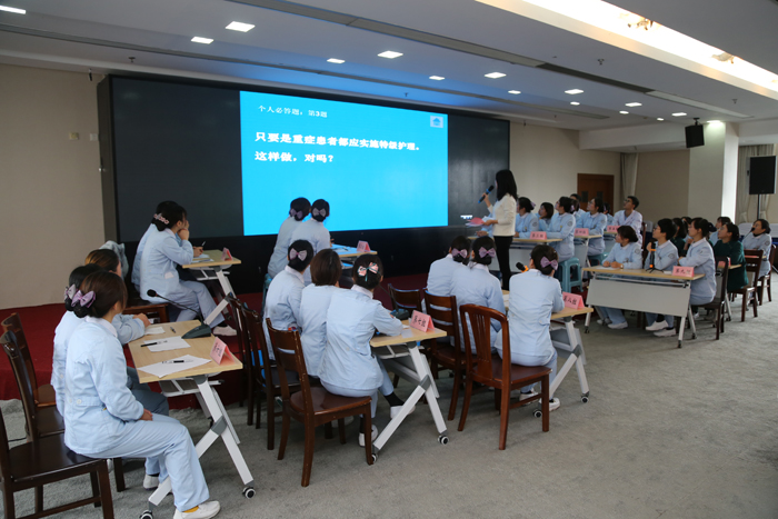本次比賽分4個(gè)環(huán)節(jié),分別是個(gè)人必答題、團(tuán)體必答題、觀眾題和風(fēng)險(xiǎn)題。經(jīng)過(guò)初賽選拔出的11支代表隊(duì), 33名護(hù)士參加了比賽。