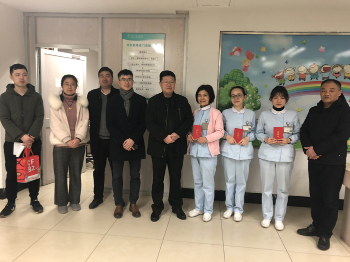 大年三十晚七點,我院院長陳震宏、副院長王巨宏、王李華率領(lǐng)相關(guān)職能部門負責人看望慰問醫(yī)院各個科室堅守崗位的一線醫(yī)務(wù)人員及值守崗位的職工們,給大家拜年,并送去新春的祝福。