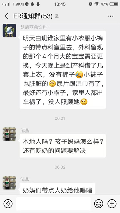 醫(yī)院里有不少護(hù)士也都有小孩,女嬰的遭遇讓科室里的媽媽們坐不住了。正在哺乳期的護(hù)士劉虹和楊冰倩輪流給女嬰喂奶。工作間隙,護(hù)士鄒燕和林佳麗輪流給女嬰喂奶粉,其他科室的護(hù)士聽說女嬰的遭遇也匆匆趕到急診科照料女嬰。