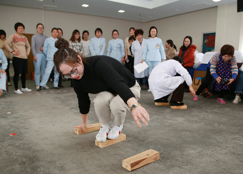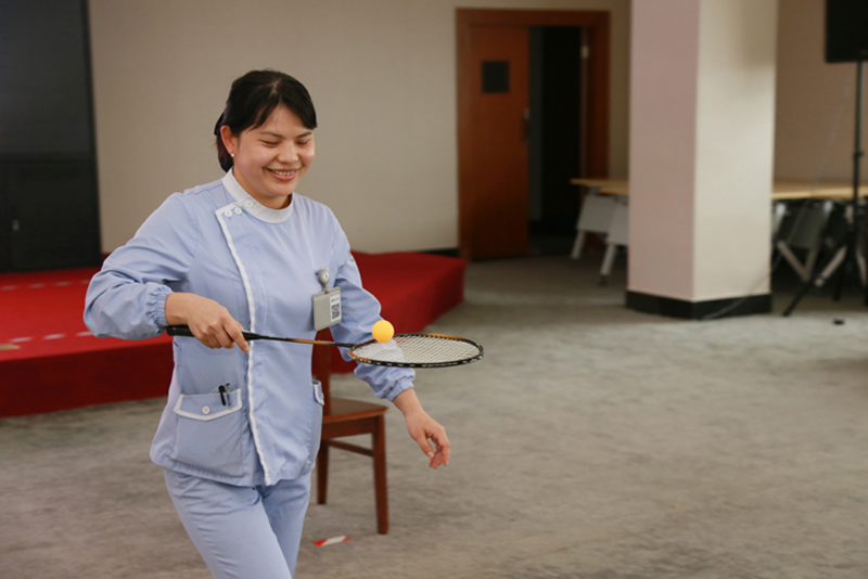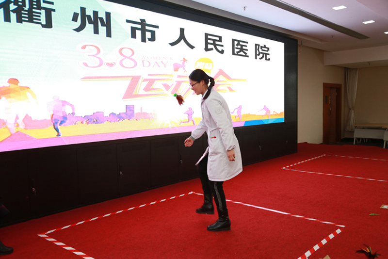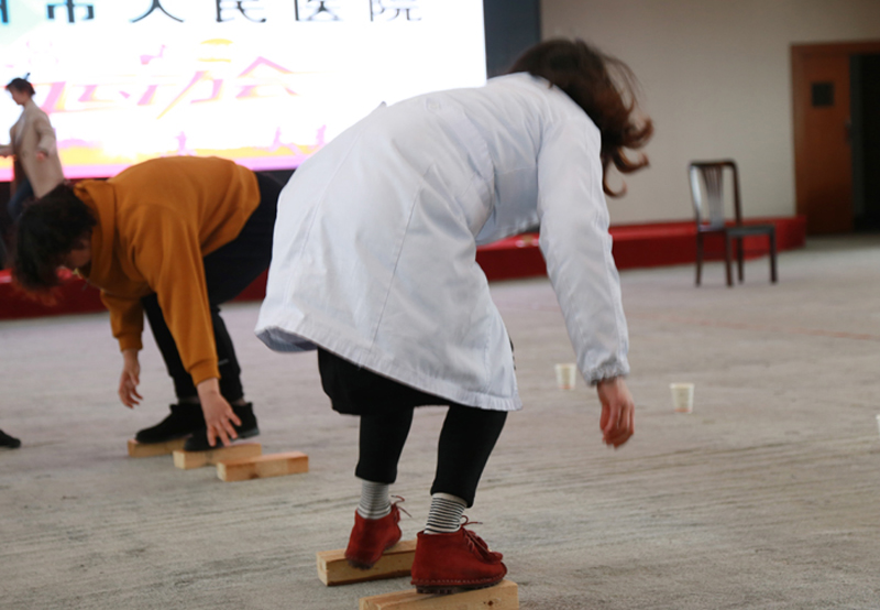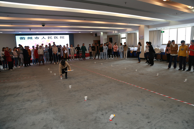 在門診五樓學(xué)術(shù)報告廳舉辦趣味運動會。最博人眼球的莫過于團體項目“搶收搶種”。