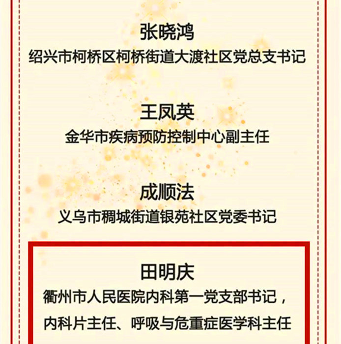 新冠肺炎疫情發(fā)生以來(lái),全省廣大黨員、干部堅(jiān)持以習(xí)近平新時(shí)代中國(guó)特色社會(huì)主義思想為指導(dǎo),認(rèn)真學(xué)習(xí)貫徹習(xí)近平總書(shū)記關(guān)于疫情防控工作的重要講話和指示批示精神,按照黨中央和省委決策部署,沖鋒在.前、英勇奮戰(zhàn),充分發(fā)揮先鋒模范作用,讓黨旗在疫情防控斗爭(zhēng)第一線高高飄揚(yáng), 為疫情防控工作取得階段性重大成果作出了積極貢獻(xiàn),涌現(xiàn)了一大批先進(jìn)典型。為表彰先進(jìn),激勵(lì)全省廣大黨員、干部再接再厲、善作善成,在大戰(zhàn)中踐行初心使命、在大考中交出合格答卷,省委決定,授予在疫情防控斗爭(zhēng)第一線表現(xiàn)突出的林樂(lè)清等40名同志“浙江省優(yōu)秀共產(chǎn)黨員”稱號(hào)。希望受到表彰的同志珍惜榮譽(yù),戒驕戒躁,繼續(xù)以昂揚(yáng)的斗志和飽滿的熱情投入到疫情防控和經(jīng)濟(jì)社會(huì)發(fā)展等工作中,不斷作出新的貢獻(xiàn)。全省廣大黨員、干部要向他們學(xué)習(xí),以先進(jìn)典型為榜樣,不忘初心、牢記使命,敢于擔(dān)當(dāng)、迎難而上,切實(shí)增強(qiáng)必勝之心、責(zé)任之心、仁愛(ài)之心、謹(jǐn)慎之心,發(fā)揚(yáng)特別能吃苦、特別能戰(zhàn)斗的精神,堅(jiān)決打贏疫情防控的人民戰(zhàn)爭(zhēng)、總體戰(zhàn)、阻擊戰(zhàn)。各級(jí)黨組織要進(jìn)一步加強(qiáng)對(duì)基層黨員、干部的關(guān)心關(guān)愛(ài),廣泛動(dòng)員群眾、組織群眾、凝聚群眾,切實(shí)匯聚起統(tǒng)籌推進(jìn)疫情防控和經(jīng)濟(jì)社會(huì)發(fā)展的磅礴力量,確保“兩手都要硬、兩戰(zhàn)都要贏”,努力實(shí)現(xiàn)全年經(jīng)濟(jì)社會(huì)發(fā)展目標(biāo),奮力譜寫(xiě)新時(shí)代中國(guó)特色社會(huì)主義的浙江篇章。