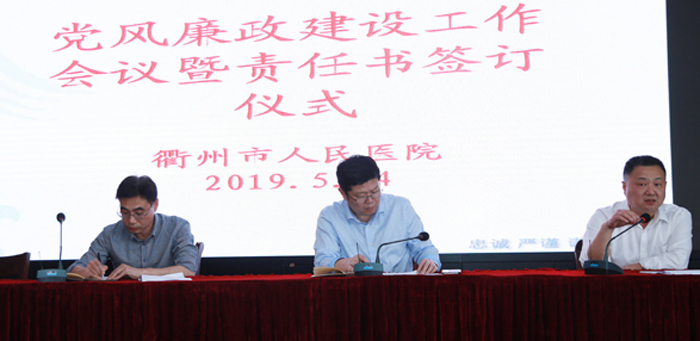 為全面貫徹黨的十九大精神全面從嚴(yán)治黨要求,進(jìn)一步推進(jìn)“清廉醫(yī)院”建設(shè),切實(shí)增強(qiáng)醫(yī)院各級(jí)黨員干部,特別是領(lǐng)導(dǎo)干部遵紀(jì)守法廉潔自律意識(shí),提高廉潔履職、拒腐防變能力,5月14日下午,我院在五樓學(xué)術(shù)報(bào)告廳召開黨風(fēng)廉政建設(shè)工作會(huì)議暨責(zé)任書簽訂儀式。院領(lǐng)導(dǎo)班子、班組長(zhǎng)及以上干部、關(guān)鍵崗位人員、特邀監(jiān)察員共200余人參加了會(huì)議。黨委書記徐天才主持會(huì)議。