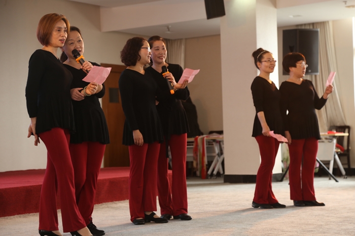 除了優(yōu)美動人的舞蹈外,還有各種才藝展示令在座的各位應(yīng)接不暇:葫蘆絲、笛子、抖音串燒、旗袍秀、大合唱和越劇聯(lián)唱,將活動推向一個又一個高潮。熱烈的掌聲此起彼伏,喝彩聲不絕于耳?;顒釉谖璧浮睹利愋那椤窐非新湎铝酸∧?。