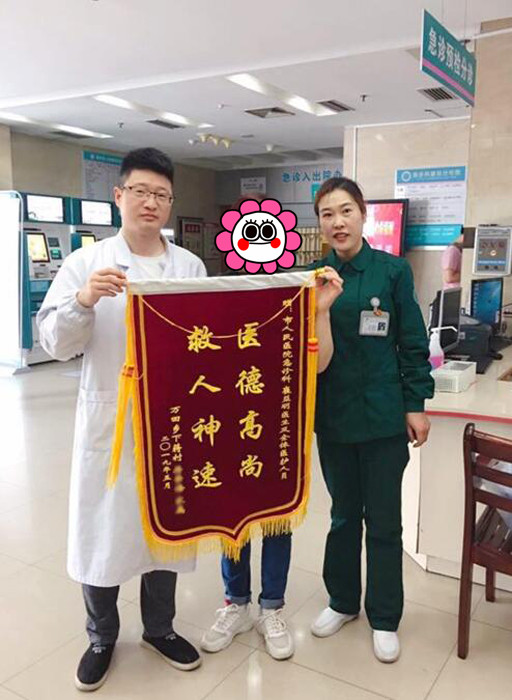 5月28日中午,萬田鄉(xiāng)下蔣村的王女士(化名)來到我院急診科,將一面“醫(yī)德高尚,救人神速”的錦旗送到醫(yī)護人員的手中,不停地說:“謝謝,謝謝你們救了我的丈夫,他在,我們就有一個完整的家?!?