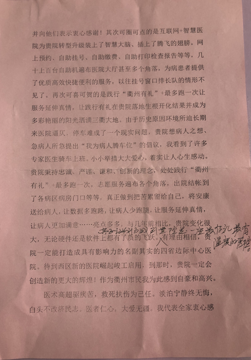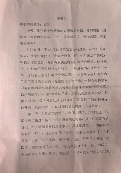 感謝信(致衢州市人民醫(yī)院、心血管內(nèi)科) 文章來(lái)源: 作者: 點(diǎn)擊數(shù):8842 更新時(shí)間:2019-05-28 上一篇: 感謝信(致金勝橋志愿者) 下一篇: 感謝信(致陳璐醫(yī)生)