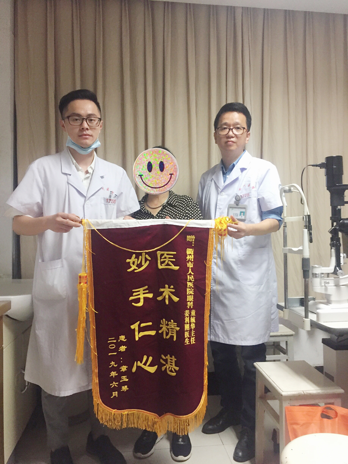 6月19日上午,市民章阿姨來到市人民醫(yī)院眼科門診,將一面印有“ 醫(yī)術精湛 妙手仁心”的錦旗送到童毓華主任醫(yī)師和他的學生姜利剛醫(yī)生的手里,并感激地說:“真的特別感謝你們,多虧了你們的幫助,才讓我及時地來院治療,并順利地用上了藥!”