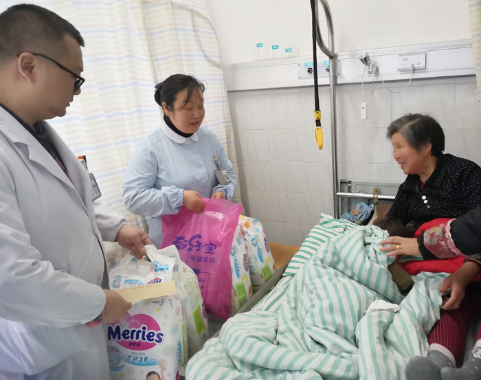 3月8日中午,我院骨科七病區(qū)出現(xiàn)了感人的一幕:護士長把科室黨員帶頭自發(fā)捐款的一千元愛心基金護士姐妹們買來的衣服及尿不濕等小兒用品,一起交到了小婷婷奶奶手里,緩解了她們一家的燃眉之急。