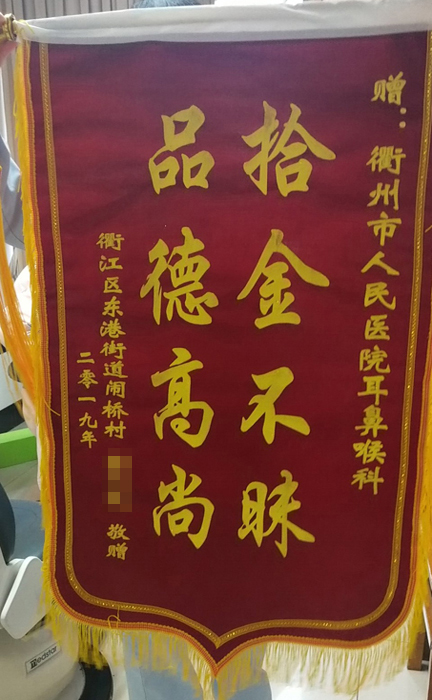 “真的太感謝你們了,多虧了你們,我價(jià)值千萬(wàn)的公文包才能失而復(fù)得?!?月15日上午,家住市區(qū)的胡先生再次來(lái)到我院門(mén)診,送上錦旗為拾金不昧的醫(yī)護(hù)人員點(diǎn)贊。