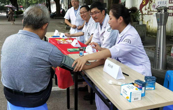 活動現(xiàn)場,醫(yī)護(hù)人員為居民提供免費(fèi)測量血壓、血糖服務(wù),發(fā)放常見疾病健康知識資料,耐心解答居民體檢報告,并告知相關(guān)注意事項。同時介紹醫(yī)院“最多跑一次”改革便民就醫(yī)服務(wù)舉措。