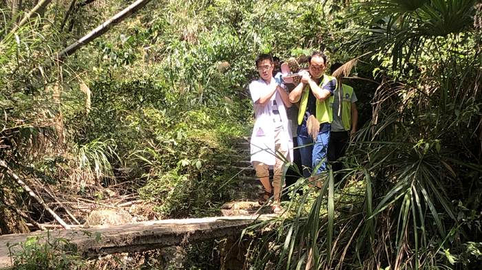 正值中午時(shí)分,烈日炎炎,讓人感覺(jué)熱得喘不上氣,但三名急救人員卻頂著暴曬,二話沒(méi)說(shuō)就把陳先生安置好,抬起擔(dān)架趕緊下山。