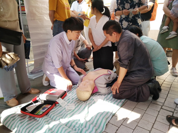 自9月20日開始,我院分別在本院門診廣場、開化縣華埠鎮(zhèn)金星村、九華鄉(xiāng)衛(wèi)生院開展了多種形式的義診活動。來自三家醫(yī)療單位的專家為群眾宣講慢病篩查、營養(yǎng)健康相關知識,現(xiàn)場進行心肺復蘇操作示范,手把手指導民眾進行規(guī)范化練習。