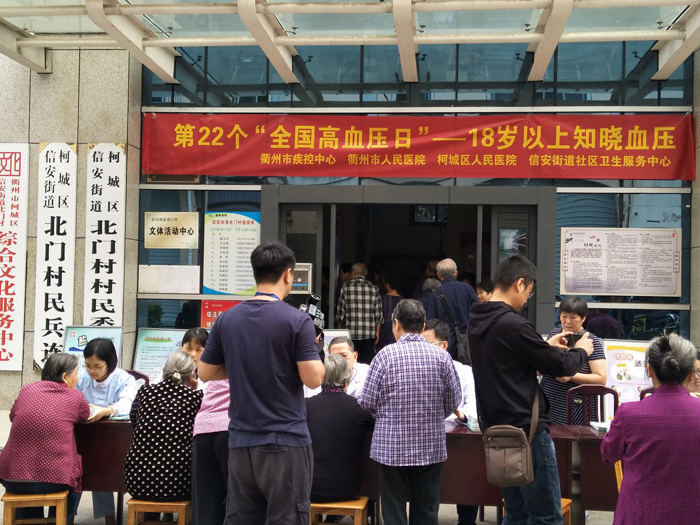 為了提高廣大群眾對(duì)高血壓危害健康嚴(yán)重性的認(rèn)識(shí),保障人民群眾身體健康,,普及高血壓病的預(yù)防宣教及健康知識(shí),提高公眾的高血壓知曉率。10月9日上午,我院聯(lián)合衢州市疾控中心、柯城區(qū)人民醫(yī)院、信安街道社區(qū)衛(wèi)生服務(wù)中心在信安街道北門(mén)村文化禮堂舉辦專(zhuān)題講座及義診活動(dòng)。防保處、心內(nèi)科、神經(jīng)內(nèi)科等科室多名醫(yī)務(wù)人員參加了此次義診宣教活動(dòng)。